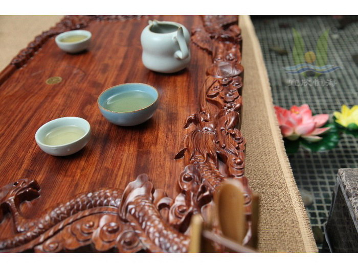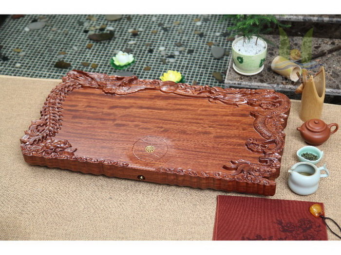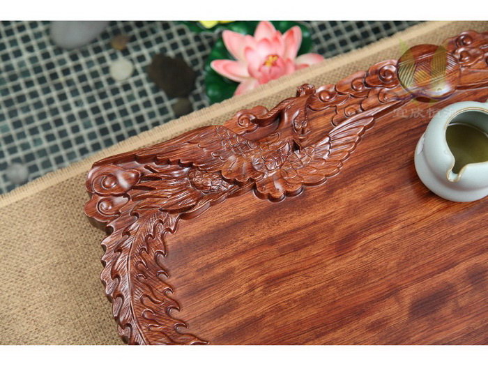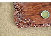 产品名字:花梨龙凤呈祥 材质:花梨木 规格:80×48×7cm 颜色:红色 产地:江苏 宜兴 品牌:宜欣恒海 · 使用注意:木质茶盘的保养比较简单:每次使用后一定将残余水分擦拭干净,尤其避免自然风干、暴晒、烘烤等。长时间不用,适当用水不时滋润。 · 陶冶情操:自然原色的茶盘,古朴典雅;高档汝窑杯具,古朴古香,茶香、木香,各自都是淡淡的,却异常柔和,像是天生就是绝配,给人以舒适的享受。中华文化的博大在于其神,喝茶品茗作为中华文化的一种,zui终目的也在乎陶冶情操,修身养性。情景图片只有拍摄背景用,此茶盘不包括图片中的茶杯! · 工艺:花梨耐腐耐蚀,而且木质坚硬、散发清香,在制作处理上非常讲究,烘、磨、漆、晾十几道工序一样也不能缺,经历多道生漆处理后,材质观感高雅和质朴,同时花梨木还有很高的药用价值。 · 品质卓越:此 款花梨木茶盘采用原产优质花梨木制成,纹理交错、清晰,颜色突兀,在红木中属于比较漂亮的木材,有微香气,生长年轮不明显。成品茶盘无论是色泽、质感、粘 合还是防水性能,与目前市场上的同类产品相比都极为出众,茶盘为您奉献不仅是一件商品,更是一件艺术品,正品保证,送礼自用两相宜。